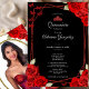 This elegant red and black quinceanera invitation has a red tiara crown, red roses, and red butterflies with a personalizable template to create your own message. The invitation template is customizable in the listing editor and is also available as a digital download that's printable after you personalize it.