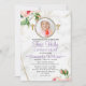 Modern elegant Invitation for your daughter's first communion celebration. The invitation is so beautiful featuring a bunch of pink roses design with a Marble background. Also, we have made the invitation with extra customisation with the photo of your daughter to make it look more unique and special. All it takes is taking a picture with your phone and adding it to the modern beads frame.