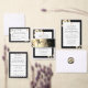 Design front features a large image of a beautiful sepia rose against a black background. Names of couple are displayed against a white rectangular backing in an elegant silver font.