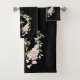 Elegant Roses Floral Script Monogram Black Gold Bath Towel Set