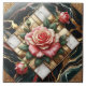 Elegant Roses on Marble and Gold Background Ceramic Tile