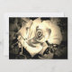 Design features your photo in upper right corner. Sample text reads, "Save the Date!" Couple's names, the date, city and state appear in lower, left corner over a black backing. Close-up image of a sepia rose on both sides. All text is customisable. Designed to coordinate with the Elegant Roses wedding suite.