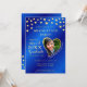 Create a unique photo graduation invitation for the class of 2025 graduate designed in royal blue and gold colours decorated with hearts. Templates make it easy to personalise the invites with your data and upload a photo. Name and Family Name are changed separately to have this stylish curved view. Please use the template to upload your photo to have the same heart-shaped image of the grad. Try a few photos to choose which one suit best for a heart-shaped image. Blue background imitates metallic surface.