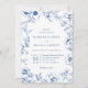 Elegant Royal Blue Floral Garden QR Code Wedding Invitation