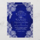 Elegant Royal Blue Floral Lace Wedding Invitation