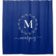 Elegant Royal Blue Personalised Wreath Monogram Shower Curtain