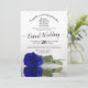 This beautiful invitation is designed for couples who have decided to take their weddings online due to the ongoing pandemic, or any other reason. It features a gorgeous design with lacy script calligraphy a single long-stemmed royal blue or cobalt coloured rose reflecting in a pool of water. Wonderful way to invite your friends and family to share in your special day, even if circumstances prevent a physical gathering.