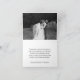 This beautiful card is the perfect way to thank your wedding guests for being a part of your special day. The front features an elegant long stemmed royal blue or cobalt coloured rose lying on its side reflecting in water with a beautiful script title reading "thank you." Inside is a place for you to upload your wedding photo as well as a short note and signature. Beautiful ending to a new beginning.