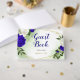 elegant royal blue & white flowers green leaves botanical gold geometric wedding guest book
