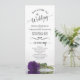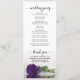 This beautiful wedding program features an elegant design with a single long stemmed deep royal purple coloured rose lying on its side reflecting in water. The titles are written in fancy script calligraphy, and there is space for your ceremony and wedding party details, as well as a short thank you for your guests. Wonderful way to welcome your friends and family to your wedding celebration.
