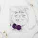 elegant romantic royal purple flowers and silver grey leaves on silver circle save the date invitation