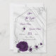 elegant romantic royal purple flowers and silver grey leaves on silver geometric frame save the date invitation
