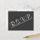 This elegant, respectable R.S.V.P postcard design features the message "R.S.V.P." on the front. It also features a custom RSVP form on the back for the recipient to complete, along with a custom address that the completed RSVP cards would be mailed to. RSVP cards like this could perhaps be used to find out who will be attending a wedding anniversary party, a graduation party, a baby shower, or some other event.