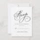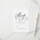This response card features the letters "rsvp" in an elegant black script. Text fields are customisable and can be changed, if desired.