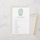 This word scramble Baby Shower game features a hand drawn yellow rubber duck framed in a soft blue ribbon tied in a bow at the bottom.