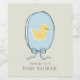 Cute meets elegant with these sweet baby shower wine bottle labels featuring a hand-drawn rubber duck inside a ribbon frame. The typography is chic and elegant.