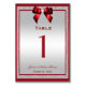 Elegant Ruby Red & Silver Glitter Wedding Table Number