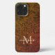 Elegant Rust Orange Gold Floral Script Monogram iPhone Case