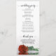 This beautiful wedding program features an elegant design with a single long stemmed rust orange coloured rose lying on its side reflecting in water. The titles are written in fancy script calligraphy, and there is space for your ceremony and wedding party details, as well as a short thank you for your guests. Wonderful way to welcome your friends and family to your wedding celebration.