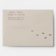 Watercolor landscape painting of trees, flying birds and montains on the inside of this envelope. Earthy colours of a autumn nature illustration.