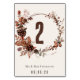 Earthy colours of a autumn leaves in a rustic wreath with leaves, pine conesand twigs. Large table number in this rustic design. Perfect for a fall wedding. Same design on both sides.