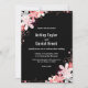 This elegant floral wedding invitation is perfect for a modern summer wedding. The simple design features blooming pink flowers with elegant white typography on a bold black background.