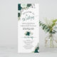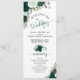 This beautiful wedding program features an elegant floral boho chic design with hand painted roses in shades of emerald green and sage on a white background. The titles are written in fancy script calligraphy, and there is space for your ceremony and wedding party details, as well as a short thank you for your guest. Wonderful way to welcome your friends and family to your wedding celebration.