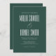 This chic wedding invitation will bring a touch of natural elegance and timeless beauty to your special day. The rich, deep green hue paired with subtle striking script, serif, and sans serif fonts creates a warm and inviting feel that sets the perfect tone for an unforgettable celebration. This piece features a unique blend of nature-inspired sophistication and understated refinement.