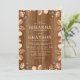 Autumn fall woodland wedding invitations featuring a rustic wood background, autumnal oak leaves, and a modern wedding text template that is easy to personalise.