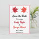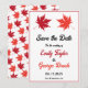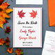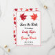 This elegant fall wedding save the date invitation is perfect for a modern autumn wedding. The simple design features burgundy and orange falling leaves with elegant black and burgundy typography on a white background.