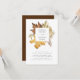 Elegant Brown Rustic Autumn Leaves Fall Wedding All In One QR Code Invitation Card. Pretty, elegant and modern wedding invitations for your special occasion! Perfect for the beautiful and calming autumn fall season! Watercolor dark light brown and golden yellow autumn leaf foliage square border with a variety of maple leaf, oak leaf and dried flowers frames the top of your wedding celebration details. Your names are featured in modern font at the top, and reverse card to reveal a dark brown pattern background at the back. Customise your wedding details, date, venue and more at the front.