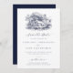 Impress your guests with this elegant formal wedding save the date by JessicaAmber. This classic card features a detailed illustration of a rustic farmhouse, which you can replace with an image of the destination you will be married at (transparent or white background preferred). Elegant dark blue lettering displays the bride and groom names, and details of the wedding, including the location, date and that a formal invitation will follow.