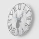 Elegant Rustic Faux White Wood & Grey Deer Large Clock