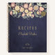 Editable text vintage rustic country vintage chic recipes notebook featuring delicate blush pink, peachy cream, and sage green botanical wildflowers garland on a dark navy background. +++++++++++++ This recipe book can be a beautiful gift for your own kitchen or a keepsake personalised gift for someone special, anniversary, birthday, Christmas, bridal shower, or a wedding gift.