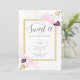 Eucalyptus and myrtle leaves, hand-drawn in classic graphite pencil and layered in gold (digitally), together with watercolor and pencil roses in pink and purple, make for a modern, sophisticated, elegant and chic Sweet 16 invitation template that also features modern script calligraphy. A lovely choice for a Sweet 16 party with a rustic theme, or a garden theme, or a country chic theme.