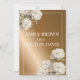 Elegant Gold Brown Wedding invitation card featuring a warm gold-brown background with delicate white flowers.this classic floral wedding invite combines simplicity and romantic celebrations .includes bride and groom names ,wedding date,and venue detailes in a clear ,stylish layout.