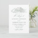 Rustic wedding invitations with a green sketched illustration of a barn displayed at the top of the invite on a white background. The photo barn wedding invitations feature elegant green calligraphy elements throughout the design. Personalise the green wedding invites with your names and wedding details. The invitation reverses to display your full-bleed vertical engagement photo.