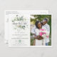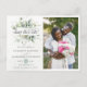 This romantic and elegant floral wedding Save The Date photo postcard presents a chic botanical design that features a classy bouquet of light and airy watercolor greenery and eucalyptus leaves complemented with glittery golden speckles (printed) and is easily customizable with one of your favorite engagement pictures. The back of the card is personalizable with your return address, your personal message, and a handy QR Code to provide your guests with all your wedding details and update.
