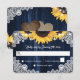 Elegant Rustic Navy Blue Wood Sunflower Wedding RSVP Card