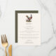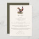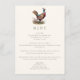 Hunting themed dinner menu card with a pheasant illustration and elegant typography, dark olive green backer and custom text. Perfect for a country dinner, elegant wedding rehearsal dinner, hunting dinner, hunting retirement party or hunting birthday party.