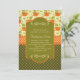 Cute pumpkins and a delicate dark green pattern gives a elegant rustic look to this Thanksgiving invitation.