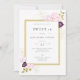 Eucalyptus and myrtle leaves, hand-drawn in classic graphite pencil and layered in gold (digitally), together with watercolor and pencil roses in pink and purple, make for a modern, sophisticated, elegant and chic Sweet 16 invitation template. A lovely choice for a Sweet 16 party with a rustic theme, or a garden theme, or a country chic theme.