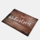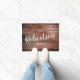 Welcome your guests with this rustic, yet elegant personalized faux rose gold and wood print doormat. This custom doormat is a perfect housewarming gift.
