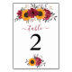 Elegant Rustic Sunflower Floral Burgundy Wedding Table Number