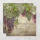 This design has a variation on the reverse side - it has curved text with the bride and groom's first names and wedding date over a vintage etching design. Square Paper Invitation Card illustration design which is ideal for Summer, Autumn or Fall Rustic Vineyard outdoor country style weddings at a winery venue location. Beautiful Pinot Noir, red wine grapes and their leaves are hand painted original artwork by Audrey Jeanne Roberts. They have been placed over a warm, worn, distressed wooden fence board background that is antiqued with great texture and subtle decorative vintage printer's ornament swirl scroll elements that add a touch of elegance. The perfect mixture of formal and comfortable, elegant and trendy yet a timeless classic wedding invitation collection theme that will be as beautiful when you look at for your twenty fifth anniversary! There is a complete wedding invitation set with four different grape varieties is you are looking for a slightly different colour combination take a look at the other collections. Each have coordinating products for bridal shower, couple's shower, rehearsal dinners, ceremonies and wedding receptions.