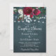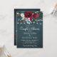 Winter rustic couple's shower party stylish invitation template on a dark midnight blue chalkboard featuring a beautiful burgundy and white peony roses bouquet with dark green seasonal foliage, strings of white twinkle lights, and a chic typography script. ++++++++++++++ Easy to personalise with your details! +++++++++++++++ The invitation is suitable for an elegant winter modern rustic country farmhouse cottage Christmas couples shower, engagement, or other couple parties.
