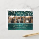Personalised teal and gold wedding photo save the date postcards with an elegant script font. Our wedding save the date features a photo collage of 3 images against a rustic teal wood background adorned with string lights. Easily personalise this rustic photo save the date postcard with your images and wedding details including a wedding website, if desired. For custom requests, please send us a message.