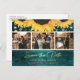Elegant Rustic Wood Teal Sunflower Wedding Photo Announcement Postcard