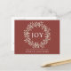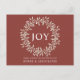 Elegant modern rustic holiday postcard. Graphic wreath in beige with JOY in white with a rustic red postcard. Customized the back or delete the text for a handwritten message.