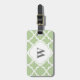 Monogram Luggage Tag in Sage Green and White Quatrefoil; grey text